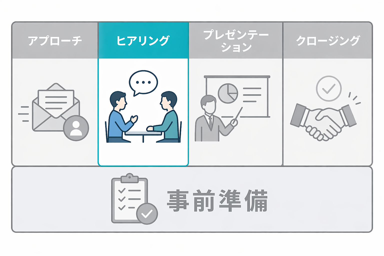 深いヒアリングをするためには、前段階であるアプローチができている必要があります。